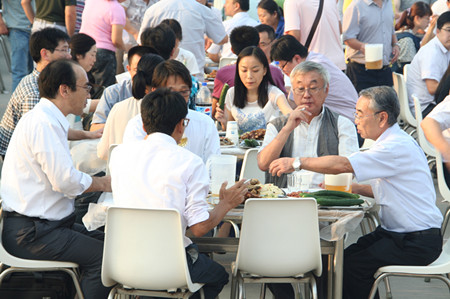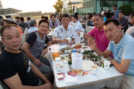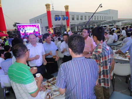 17:30,志賀進總經(jīng)理端著酒杯,走到舞臺前,首先感謝廣大員工的辛勤努力,使公司取得很好的業(yè)績,隨著一聲“干杯”,荏原博泵第五屆納涼晚會拉開了序幕。公司380多名員工,分部門有序而坐,大家推杯換盞,興高采烈。公司領(lǐng)導(dǎo)挨桌給員工們敬酒,大家沒有了上下級的拘謹,一派歡樂祥和的景象。
