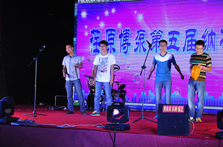 18:00,文藝演出正式開始,首先是搖滾樂隊帶來的勁爆歌曲,將晚會現(xiàn)場帶入了熱烈的氛圍。晚會上,有抒情懷舊的經(jīng)典老歌,有驚艷柔美的女工舞蹈,有激情四射的魅力街舞,還有新員工自編自演的三句半,更有抒發(fā)對公司深厚情感的詩朗誦《騰飛吧,荏原博泵》。有公司領(lǐng)導(dǎo)的獻唱,有普通員工的表演。每一個節(jié)目,都凝聚了員工的心聲,每一個節(jié)目都飽含了員工的熱情。在晚會上,公司常務(wù)副總經(jīng)理王正軍先生深情地說;今天是個歡樂的日子,荏原博泵歷經(jīng)八年的發(fā)展,從現(xiàn)在開始已經(jīng)步入了健康發(fā)展的軌道。今年公司訂單已達五個億,下一步就是生產(chǎn)、制造、交貨要交給在座各位,希望大家就像一臺機器的每個部件一樣,齊心協(xié)力配合好,公司的經(jīng)營成果會與大家共享!王總也一改往日的豪情,演繹了一首《風(fēng)往北吹》,表現(xiàn)了一個鐵血男兒柔情的一面。